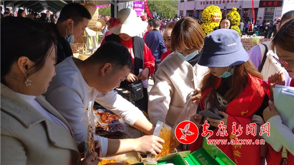 在扶貧產(chǎn)品展銷區(qū),土蜂蜜、臘肉、茶葉等特色農(nóng)副產(chǎn)品擺滿了各個展臺,前來品嘗購買的游客爭相購買。“這個豆腐干不錯,給我來兩袋。”剛買了臘肉干,張女士又帶了兩袋農(nóng)戶自制的豆腐干,裝了滿滿一袋子。