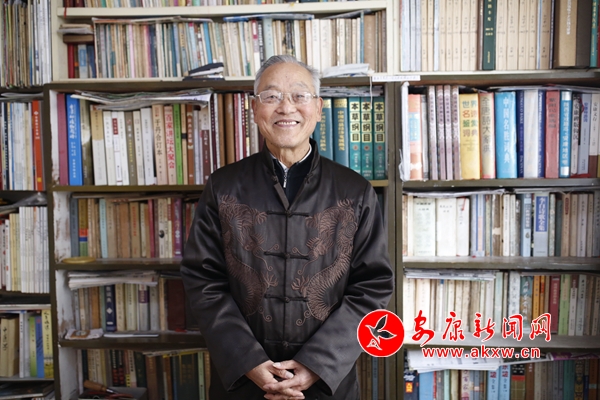 他的家在一樓,春日陽光把屋里曬的暖暖,兩面墻的萬卷藏書讓人一進門就覺得徜徉于典籍的海洋。郭老緩緩坐在靠窗的凳子上,用一只手用力按住強烈抖動的另一只手,娓娓道來。