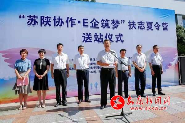 本網(wǎng)訊(記者 張世虎)8月12日下午,“蘇陜協(xié)作·E企筑夢”扶志夏令營送站儀式在安康火車站舉行,來自我市的30名優(yōu)秀學(xué)生和5位老師踏上奔赴南京列車,將開啟一段美好的研學(xué)之旅。省委網(wǎng)信辦副主任黃永宏,安康市委常委、宣傳部長羅雪劍出席并講話。