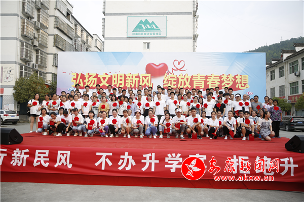 本網(wǎng)訊(記者 李俊 實習(xí)記者 羅超)8月20日,平利縣老縣鎮(zhèn)舉辦“弘揚文明新風(fēng) 綻放青春夢想”2019年集體升學(xué)禮活動。4Qj安康新聞網(wǎng)