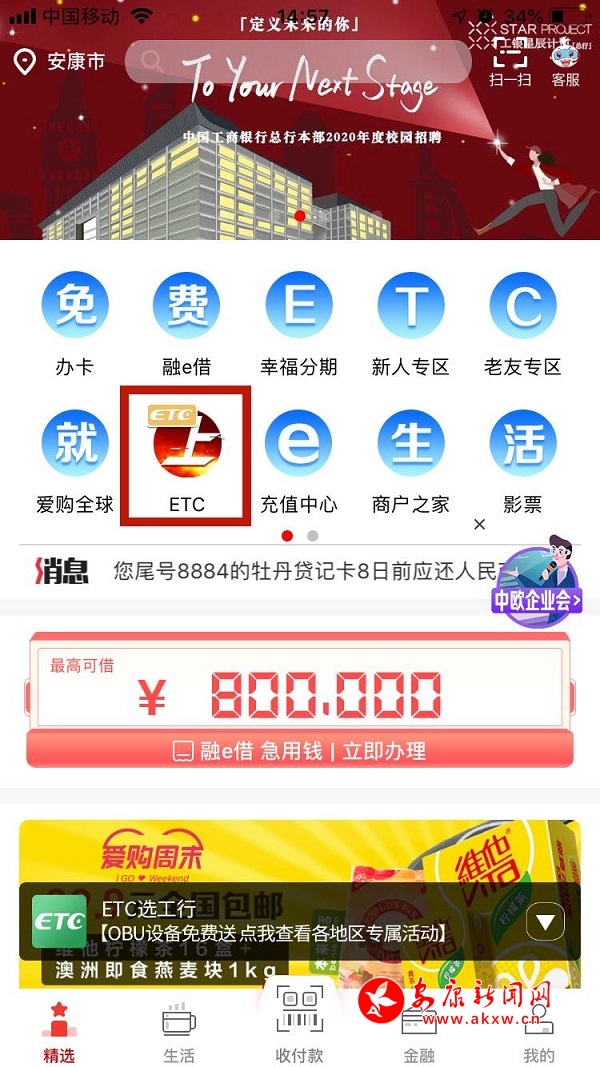 隨后,記者來到了中國銀行安康分行,發(fā)現(xiàn)該行為了鼓勵車主辦理ETC,除了國家規(guī)定優(yōu)惠政策外,也推出有安裝折扣活動。
