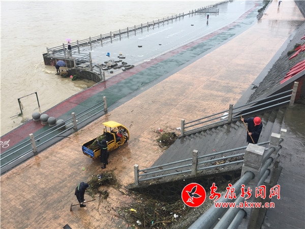 本網(wǎng)訊(記者 張喬 實(shí)習(xí)記者 馬娟)“我們昨天晚上一直注意漢江的水位,也安排的有人員值班,昨晚兩點(diǎn)多水就已經(jīng)退了,早上7點(diǎn)多我們就來(lái)打掃了。”9月17日,雨水未歇,市政園林處的工作人員正在雨中組織人員清掃洪水過(guò)后的垃圾,其中一位工作人員告訴記者。
