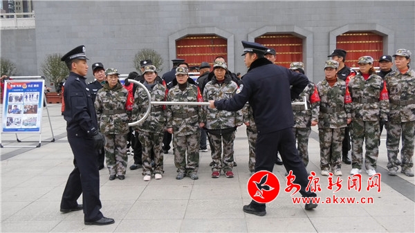 在西城閣廣場,黨員民警聯(lián)合和江北派出所社區(qū)民警,采用擺放法制宣傳展板、發(fā)放宣傳單、法律咨詢服務(wù)等形式,向過往群眾講解法律、法規(guī)常識,宣講綜治平安建設(shè)的新部署、新目標、新要求和防盜搶、防詐騙、防暴恐等方面的安全防范知識。同時結(jié)合警種業(yè)務(wù)實際,支部還組織了警務(wù)實戰(zhàn)教官對社區(qū)保安、巡防隊員,就簡單實用的防衛(wèi)、解脫、控制技法和鋼叉、警棍的使用進行了現(xiàn)場講授。