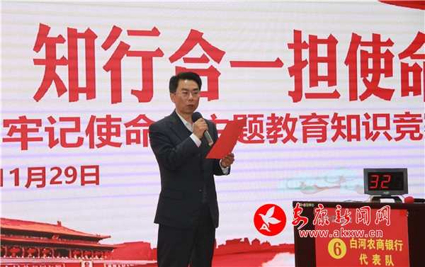 本網(wǎng)訊(記者張喬 實(shí)習(xí)記者 雷文鈺)為深入學(xué)習(xí)貫徹黨的十九大精神,推進(jìn)“不忘初心、牢記使命”主題教育活動(dòng)開(kāi)展,提高廣大黨員和干部職工政治理論素養(yǎng),11月29日上午,省聯(lián)社安康審計(jì)中心舉辦全市農(nóng)商銀行“不忘初心、牢記使命”主題教育知識(shí)競(jìng)賽活動(dòng)。