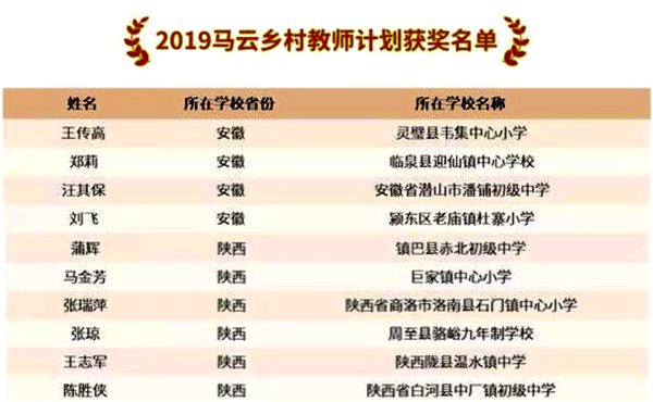 據(jù)了解,今年獲獎的100位鄉(xiāng)村教師來自全國24個省、自治區(qū)、直轄市,平均年齡39歲,最小的只有23歲。截至最新,馬云鄉(xiāng)村教育系列項(xiàng)目累計已直接資助了500名鄉(xiāng)村教師、60名鄉(xiāng)村校長以及200名鄉(xiāng)村師范生,直接影響鄉(xiāng)村兒童近10萬人。更特別的是,有79%的入選者來自國家級貧困縣。