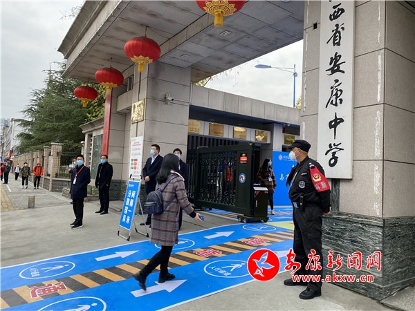 在高新中學(xué)校門口,安保人員、新冠肺炎疫情防控人員及公安、防疫人員早已定點(diǎn)就位,并逐一對(duì)入校的學(xué)生進(jìn)行防控檢查。QbV安康新聞網(wǎng)