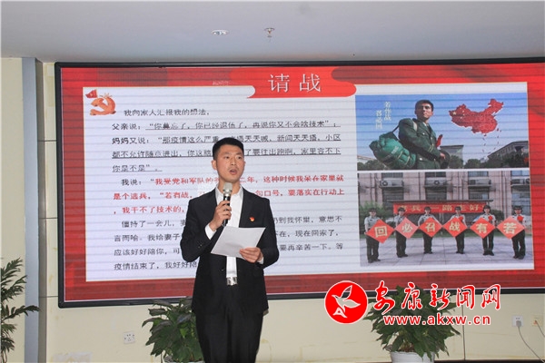 本網(wǎng)訊(記者 張世虎 張喬)青春心向黨,建功新時代;戰(zhàn)“疫”路上,感謝有你。4月26日, 我市戰(zhàn)“疫”青春故事宣講報告預(yù)賽活動在安康日報社成功舉辦,來自全市各縣區(qū)的37名選手講述了自己和身邊感人的戰(zhàn)“疫”故事。