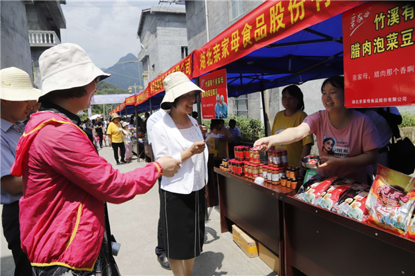 活動(dòng)現(xiàn)場(chǎng),鎮(zhèn)坪縣和竹溪縣各具特色的農(nóng)副產(chǎn)品在竹葉村進(jìn)行集中展銷,臘肉、茶葉、葵花油、百花蜜以及各種地方特色手工藝品吸引了往來游客紛紛品嘗與購(gòu)買。