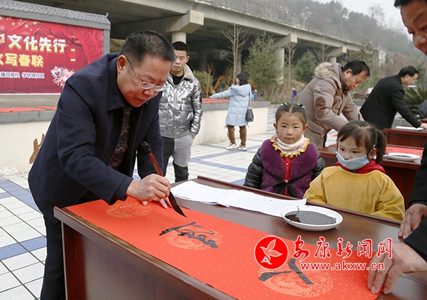 本網(wǎng)訊 2月5日上午,在春節(jié)來臨之際,安康日報社組織人員赴幫扶點(diǎn)——漢濱區(qū)流水鎮(zhèn)學(xué)坊埡社區(qū)開展“鄉(xiāng)村振興文化先行”迎新春義寫春聯(lián)活動,為村民們送去新年的祝福。市書協(xié)主席王曉琪受邀參加活動。