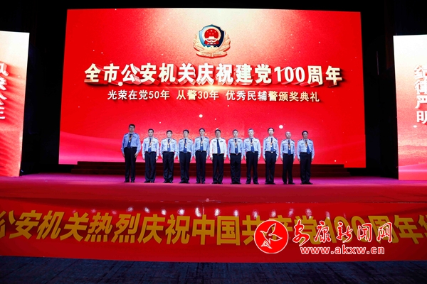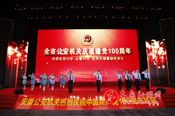 本次活動(dòng)旨在全面展示全市公安隊(duì)伍教育整頓成果成效,大力弘揚(yáng)公安英模精神,宣傳表彰隊(duì)伍中涌現(xiàn)出來(lái)的先進(jìn)典型,凝聚警心、鼓舞士氣,激發(fā)廣大民警全力以赴做好保安全、護(hù)穩(wěn)定、抓改革、促發(fā)展各項(xiàng)工作熱情;顒(dòng)分為安寧康泰、牢記使命、不忘初心三個(gè)篇章,一曲曲高昂的贊歌,一幕幕鮮活的畫(huà)面,一個(gè)個(gè)感人的故事,生動(dòng)再現(xiàn)了中國(guó)共產(chǎn)黨建黨100年來(lái),矢志踐行初心使命,一路披荊斬棘、篳路藍(lán)縷,錨定奮斗目標(biāo),創(chuàng)造輝煌開(kāi)辟未來(lái)的壯麗詩(shī)篇;形象展示了安康公安機(jī)關(guān)和廣大民輔警牢記初心使命,服務(wù)中心大局,扎實(shí)推進(jìn)黨史學(xué)習(xí)教育和公安隊(duì)伍教育整頓,忠誠(chéng)履職,砥礪奮進(jìn)的良好形象。活動(dòng)中,與會(huì)領(lǐng)導(dǎo)向優(yōu)秀民輔警頒發(fā)了獎(jiǎng)杯,向“光榮在黨50年”代表頒發(fā)了勛章,向“從警30年”代表頒發(fā)了紀(jì)念章。