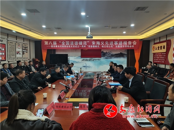 安康市河南商會黨支部書記趙士魁宣讀了關(guān)于號召商會全體黨員、全體會員積極向朱海義學(xué)習(xí)的《倡議書》,號召以朱海義為榜樣,用智慧和汗水,推動社會形成崇德向善、弘揚(yáng)正氣的濃厚氛圍。