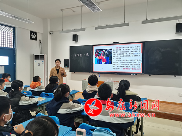 走進(jìn)漢濱初中高新校區(qū)初一年級(jí)23班,語文教師劉麗以“‘虎’力全開,做最好的自己”為題,為學(xué)生們帶來了“開學(xué)第一課”。她以經(jīng)典詩歌《做最好的自己》為切入點(diǎn),隨后通過課件展示了我國(guó)冰雪項(xiàng)目運(yùn)動(dòng)員谷愛凌、徐夢(mèng)桃、金博洋等人在冬奧會(huì)取得的優(yōu)異成績(jī),深入挖掘成績(jī)背后他們拼搏奮發(fā)的冬奧精神,引發(fā)了學(xué)生們熱烈響應(yīng),紛紛舉手表達(dá)自己的觀看冬奧會(huì)的感悟體會(huì)。