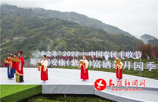 本網(wǎng)訊(記者 李俊 通訊員 鄭小虎 陳昌美 )3月22日,中國(guó)農(nóng)民豐收節(jié)暨第五屆“春之茶”紫陽(yáng)富硒茶春茶開(kāi)園活動(dòng)在紫陽(yáng)縣向陽(yáng)鎮(zhèn)富硒茶觀光園舉行。至此,標(biāo)志著紫陽(yáng)25萬(wàn)畝富硒茶全面進(jìn)入“采茶季”。YaN安康新聞網(wǎng)