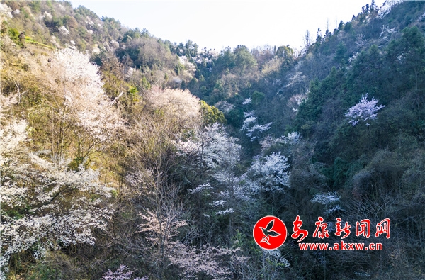 本網(wǎng)訊(記者 李俊 實(shí)習(xí)記者 卜昊天)近日,漢濱區(qū)晏壩鎮(zhèn)漫山的野生櫻桃花在和煦的春風(fēng)中競相盛開。遠(yuǎn)眺山林,從山腳到山頂次第綻放,山澗幽谷處處粉白,民居藏于其中,宛若世外桃源,起伏的山脈被一簇簇壓滿整個枝頭的櫻桃花所覆蓋。