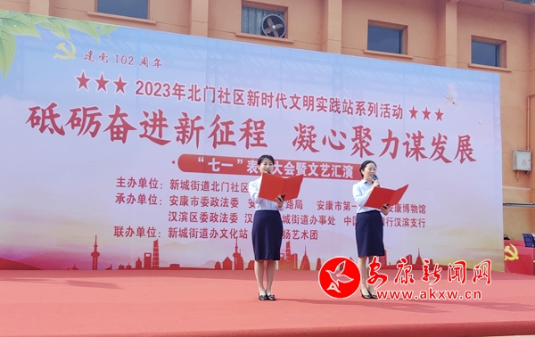 本網(wǎng)訊(記者 趙漪湉)6月27日上午,漢濱區(qū)新城辦北門社區(qū)黨支部聯(lián)合市委政法委、市公路局、市一小、市博物館、漢濱區(qū)委政法委、新城街道辦事處、農(nóng)行安康漢濱支行機(jī)關(guān)黨支部舉辦“砥礪奮進(jìn)新征程 凝心聚力謀發(fā)展”慶祝建黨102周年表彰大會暨文藝匯演。