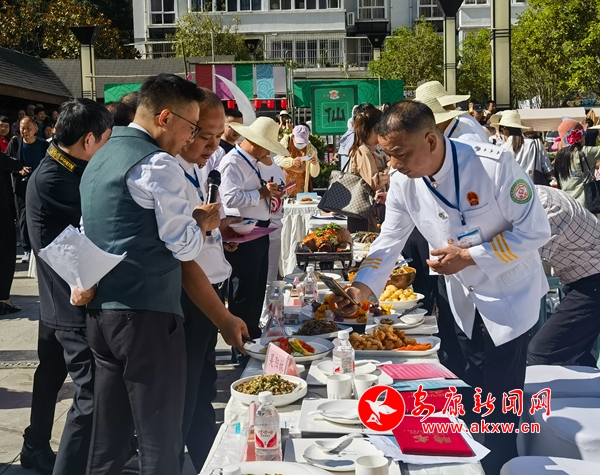 活動(dòng)現(xiàn)場,來自八仙鎮(zhèn)各村組的19組選手,紛紛拿出自己的看家絕活,在現(xiàn)場設(shè)置的灶臺(tái)前,煎、炸、煮、蒸、炒,各式烹飪手法齊上陣,金銀蛋卷、洋芋粑粑炒臘肉、天蒜土豆絲、天麻烏雞湯一道道美味佳肴精彩亮相。