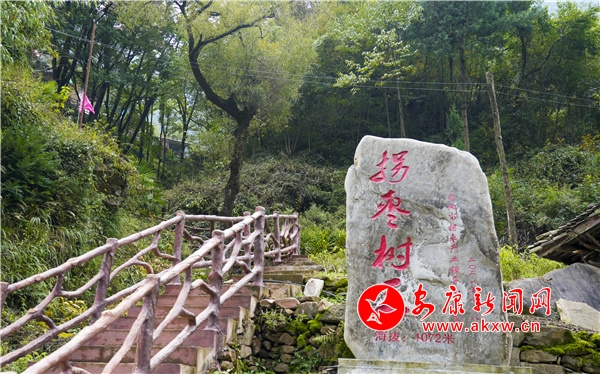 本網(wǎng)訊(記者 李俊)在旬陽市白柳鎮(zhèn)佛洞村的山溝中,生長著一棵枝干綿延、枝繁葉茂的“高齡”巨樹——拐棗樹。樹下立著一塊碑文記載,相傳此樹為先秦時期游方術(shù)士所種,是目前全球所發(fā)現(xiàn)的野生較古老果樹樹種。樹體高42米,主干直徑為3.5米,整棵樹盤根錯節(jié),亭亭如蓋,因為樹齡久遠,被鄉(xiāng)民們奉為“神樹”。