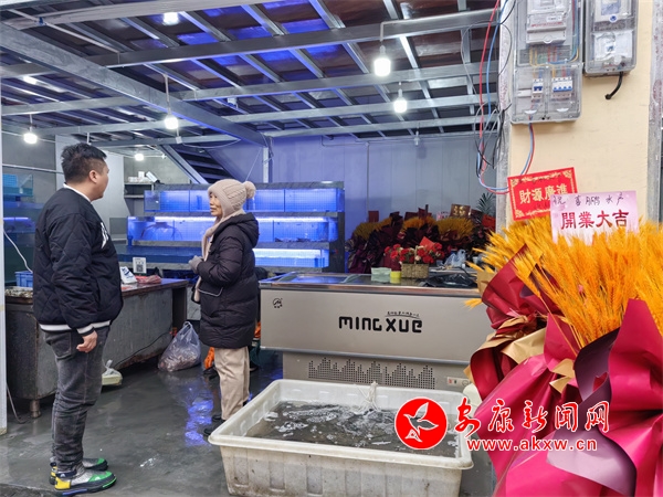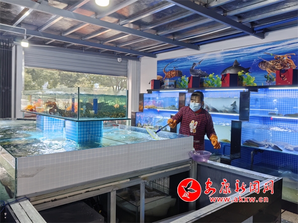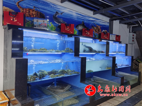 走進(jìn)水產(chǎn)品區(qū)域,店鋪里的蟹、蝦、貝等海鮮貨品齊全,價(jià)格一一寫在魚缸上。購(gòu)買蝦、蟹的顧客陳女士說,“我之前在興安菜市場(chǎng)的時(shí)候就喜歡在他家買,但原來那邊環(huán)境不太好,經(jīng)常人都下不去腳,現(xiàn)在店鋪周圍都很干凈。”