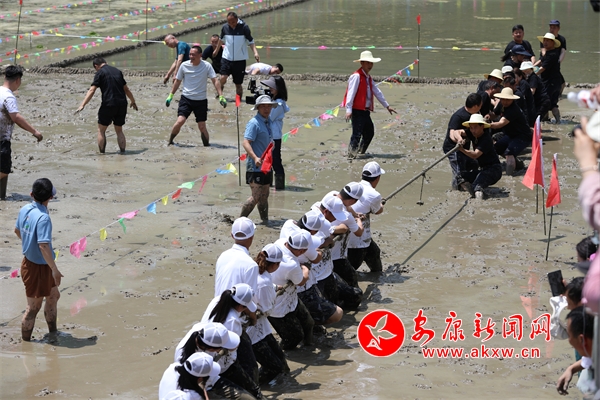 以藍天為背景,水田作舞臺。來自湖北省十堰市、白河縣、旬陽市各鎮(zhèn)和仙河鎮(zhèn)各村(社區(qū))20個隊伍、400名運動員展開一場場運動競賽。只見隊員們挽起褲腳,赤腳下田,放肆追逐,盡情歡呼,插秧比賽、稻田拔河比賽、稻田摔跤比賽、渾水摸魚等環(huán)節(jié),重現(xiàn)歡鬧的勞作場景,上演著一場場關于泥、水、魚和人的快樂“較量”,觀眾也在還原農(nóng)耕場面原始風俗、熱情勞作和農(nóng)忙氛圍中找到了童年最純真的模樣。