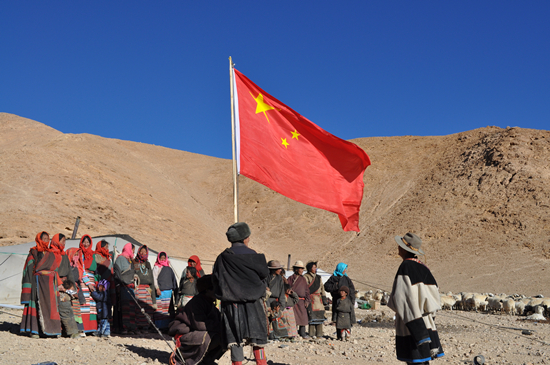 謝恩主組織牧民升國(guó)旗、唱紅歌