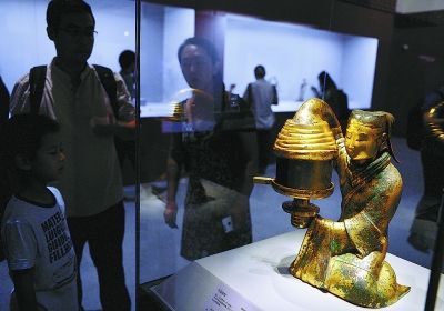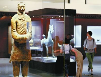 “很多都曾經(jīng)出現(xiàn)在我們的中小學(xué)課本里!敝袊奈锝涣髦行闹魅瓮踯娊榻B,此次展覽展品的來源主要有三個,一部分是剛從美國的《秦漢文明》展撤下來返京,一部分是從首都博物館剛閉幕的《美好中華》展中挪到國博,還有一部分是全國各地征調(diào)的!昂芏辔奈锸钱(dāng)?shù)氐拿餍俏奈,有些是直接從展線上撤下來的,所以湊齊展出非常不易!