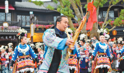 12月2日,貴州省黔東南苗族侗族自治州丹寨縣舉行盛大的苗族服飾展演巡游活動,迎接一年一度的苗族祭尤節(jié),全縣8個不同支系的苗族同胞身著盛裝,齊聚丹寨,向海內(nèi)外游客展示苗族盛裝服飾魅力!凹烙裙(jié)”苗語叫“農(nóng)尤”,“農(nóng)”意為吃或祭,“尤”為人名,即苗族九黎部落的首領(lǐng)蚩尤。“祭尤節(jié)”在2008年3月入選貴州省第二批非物質(zhì)文化遺產(chǎn)名錄。