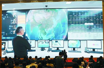 昨天,在中關(guān)村國家自主創(chuàng)新示范區(qū)展示中心,人們通過大屏幕觀看中關(guān)村海淀園“創(chuàng)新工匠”候選人的研究成果展示。(記者 饒強 攝)