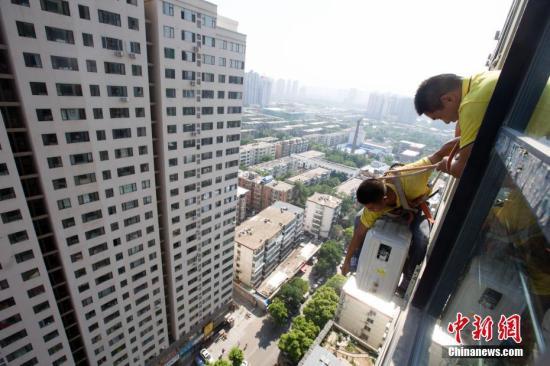 資料圖:工作人員正在安裝空調(diào)。中新社記者 張云 攝
