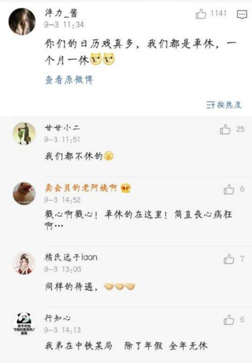 還有網(wǎng)友吐槽,“你們的日歷戲真多,我們都是單休”;“平時(shí)單休就算了,節(jié)假日還得值班”。3日下午兩點(diǎn)過,記者在成都IFS采訪到職業(yè)是醫(yī)生的楊小姐,她表示節(jié)假日一般只放法定休假的那幾天,其他時(shí)間要值班,今年兩個(gè)假期只休4天,輪休的話可以多兩天。“我老家在內(nèi)江,放假打算回家陪陪家人,順便參加一場婚禮。”