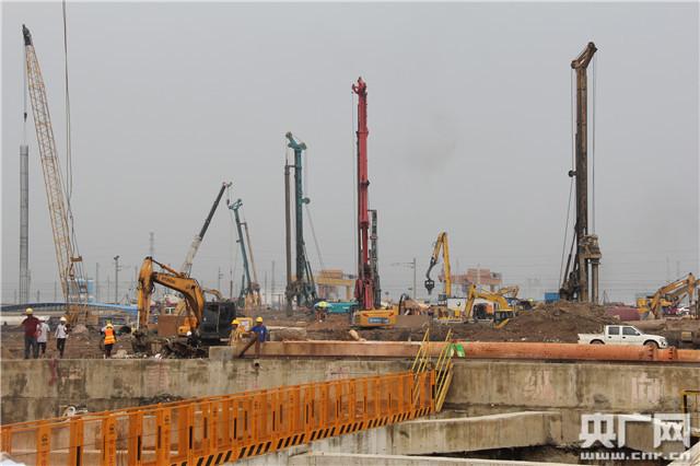 27日,珠西綜合交通樞紐江門站施工現(xiàn)常(央廣網(wǎng)記者鞏盼東 攝)