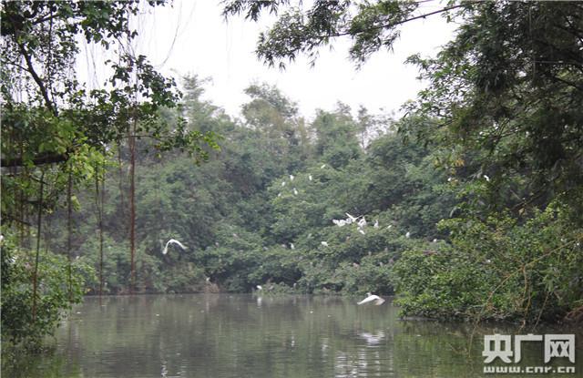 在“小鳥天堂”,棲息著夜鷺、池鷺和小白鷺等40多種鳥類。(央廣網(wǎng)記者鞏盼東 攝)