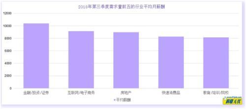 五、2018年第三季度需求量前五的行業(yè)平均月薪
