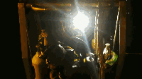 20時(shí)30分,第十批潛水員下水,起吊前最后檢查確認(rèn)水下公交車的姿態(tài)。