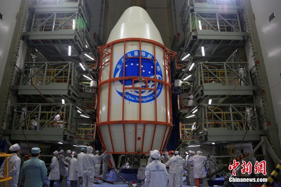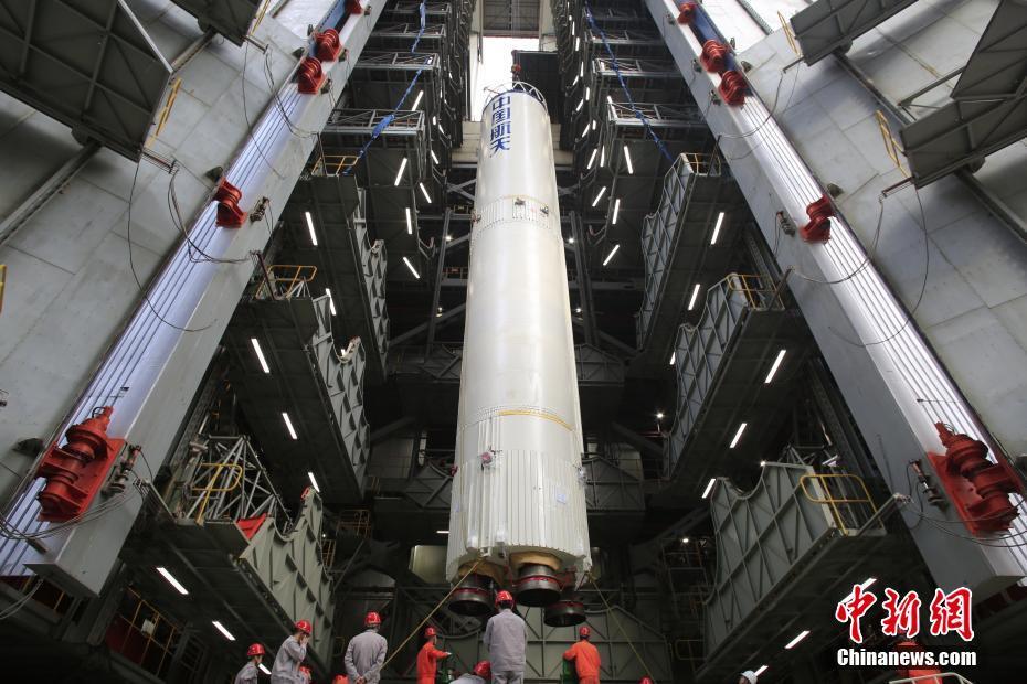 11月1日深夜23時57分,中國在西昌衛(wèi)星發(fā)射中心用長征三號乙運載火箭,成功發(fā)射第41顆北斗導(dǎo)航衛(wèi)星。這顆衛(wèi)星屬于地球靜止軌道衛(wèi)星,是中國北斗三號系統(tǒng)第17顆全球組網(wǎng)衛(wèi)星,也是北斗三號系統(tǒng)首顆地球靜止軌道衛(wèi)星。圖為衛(wèi)星發(fā)射前,火箭在發(fā)射場進行吊裝(資料圖片)。中新社發(fā) 史嘯 攝