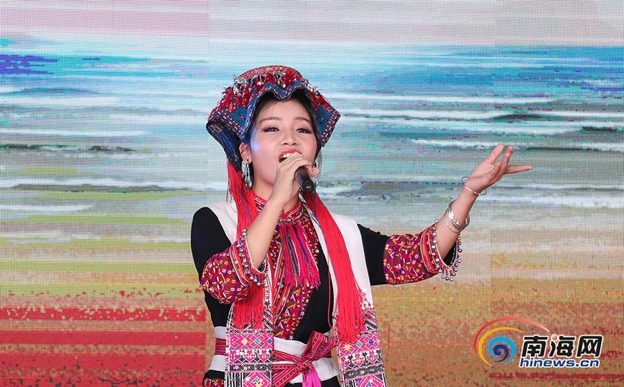 五指山苗族歌手曾若馨身著苗族傳統(tǒng)服飾,傾情演唱了歌曲《春雨來(lái)到咱苗村》。南海網(wǎng)記者李昊攝