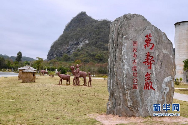 這是位于福建省三明市三元區(qū)巖前鎮(zhèn)的萬壽巖國家考古遺址公園石碑及雕塑(11月24日攝)。新華社記者 姜克紅 攝