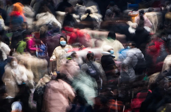 2020年1月22日,在湖北省武漢市漢口火車站,旅客戴口罩進(jìn)站乘車。1月23日,武漢宣布暫時關(guān)閉離漢通道,在全國鼎力支持下,進(jìn)入“隔一座城、護(hù)一國人”的攻堅階段。新華社記者 肖藝九 攝
