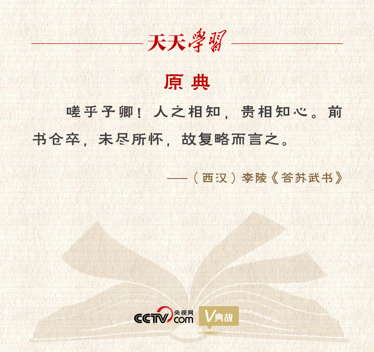 信中李陵為自己當年投降匈奴的行為進行辯白,并對蘇武發(fā)出了“人之相知,貴相知心”的慨嘆,認為人與人之間的相互理解,最可貴的是彼此心靈相通。