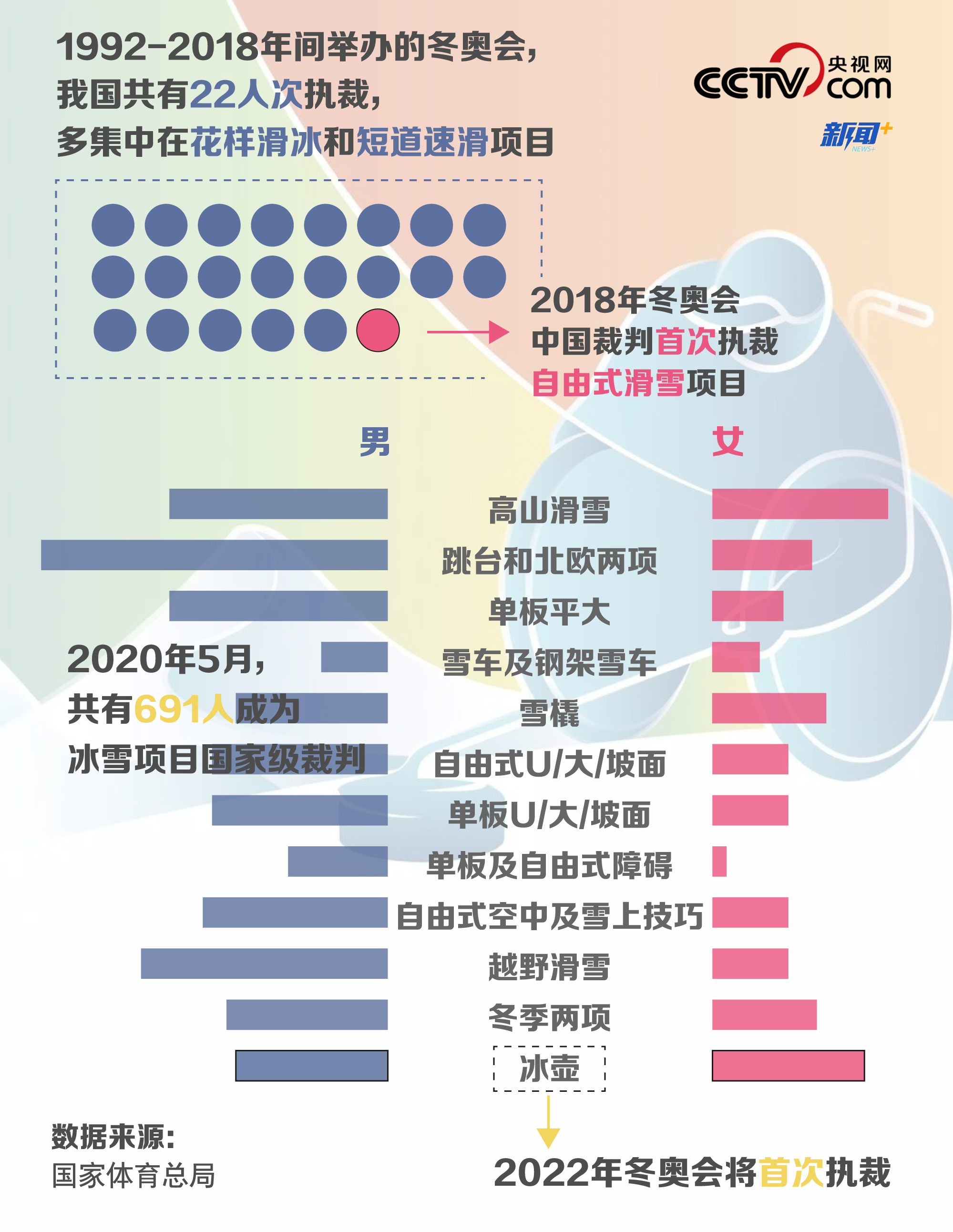 除了選手們?cè)谫悎?chǎng)上大放異彩,冬奧會(huì)賽場(chǎng)上的裁判席也開(kāi)始出現(xiàn)“中國(guó)身影”。據(jù)統(tǒng)計(jì),1992-2018年的冬奧會(huì)中,我國(guó)共有22人次擔(dān)任裁判,2018年的冬奧賽場(chǎng)上出現(xiàn)首位自由式滑雪空中技巧項(xiàng)目的中國(guó)裁判。為更好地做好冰雪項(xiàng)目競(jìng)賽工作,體育總局冬運(yùn)中心于2020年5月授予691人冰雪項(xiàng)目國(guó)家級(jí)裁判員稱(chēng)號(hào),其中多為雪上項(xiàng)目裁判員。值得一提的是,2022年冬奧會(huì)將有4名中國(guó)冰壺裁判首次執(zhí)裁。rSy安康新聞網(wǎng)
