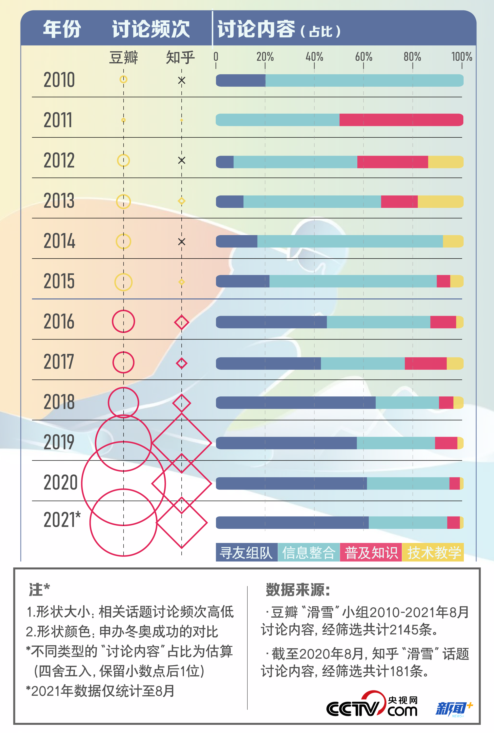 此外,人們對(duì)冰雪運(yùn)動(dòng)關(guān)注和討論的內(nèi)容也悄然改變。統(tǒng)計(jì)發(fā)現(xiàn),隨著中國(guó)互聯(lián)網(wǎng)的發(fā)展,2016年開(kāi)始,“滑雪”在網(wǎng)絡(luò)平臺(tái)的討論頻次較前五年相比明顯增加,“尋友組隊(duì)”成為大部分愛(ài)好者的第一需求,而且討論的內(nèi)容也更為豐富多元,側(cè)面反映了滑雪項(xiàng)目正逐漸脫離“小眾”,走向“大眾”。rSy安康新聞網(wǎng)