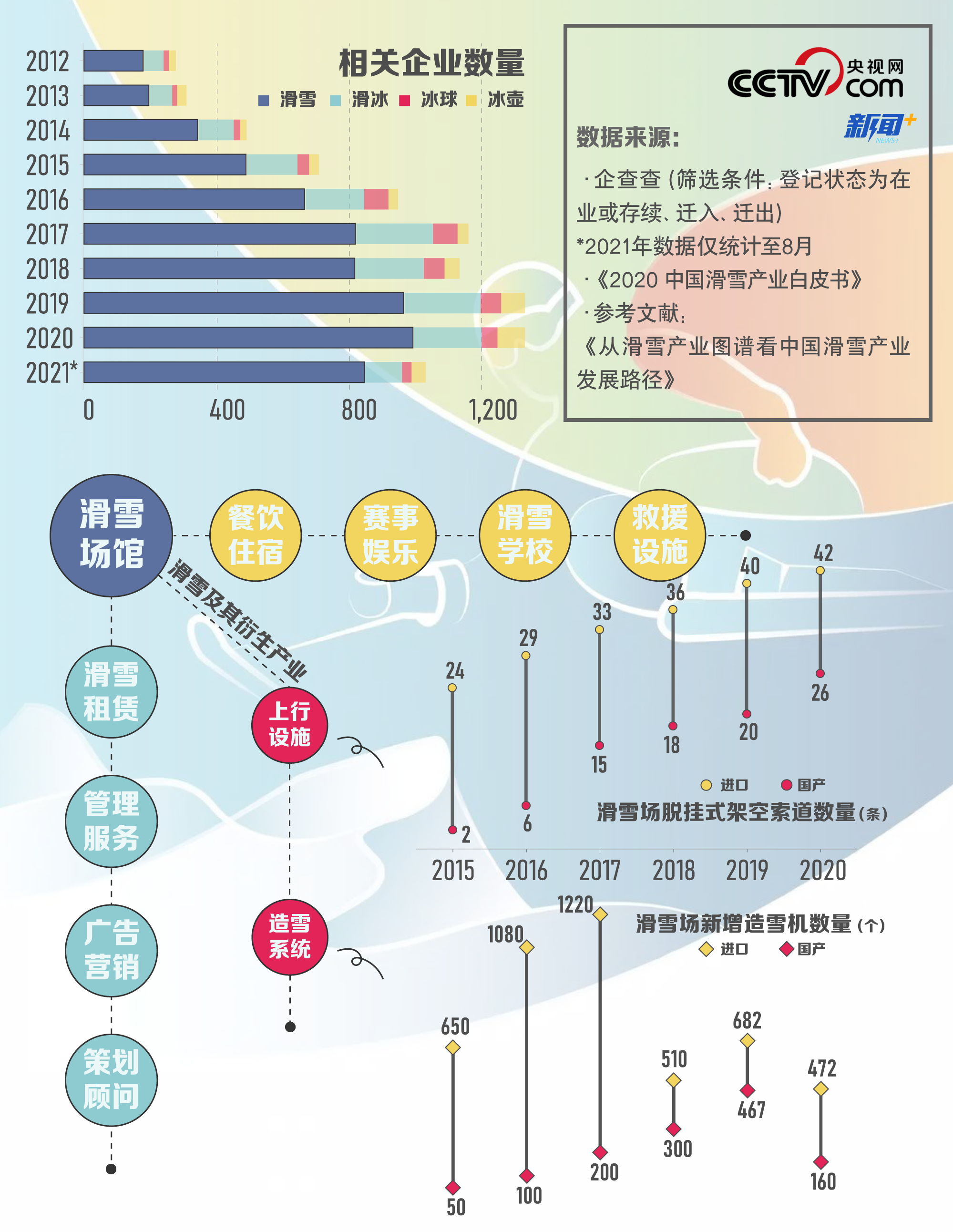 大眾對(duì)于冰雪運(yùn)動(dòng)的衍生需求給冰雪產(chǎn)業(yè)的發(fā)展奠定了一定基礎(chǔ)。近幾年,中國(guó)冰雪產(chǎn)業(yè)蓬勃發(fā)展,相關(guān)企業(yè)數(shù)量呈明顯上升趨勢(shì),2020年僅“滑雪”類(lèi)企業(yè)數(shù)量就超過(guò)2016年四類(lèi)冰雪企業(yè)數(shù)量總和。同時(shí),我國(guó)冰雪產(chǎn)業(yè)規(guī)模擴(kuò)大、覆蓋范圍也變廣,國(guó)產(chǎn)品牌逐漸“嶄露頭角”。比如國(guó)產(chǎn)脫掛式架空索道的發(fā)展勢(shì)頭迅猛,從2015年僅有個(gè)位數(shù)增長(zhǎng)到2020年的26條,此外國(guó)產(chǎn)造雪機(jī)也正代替進(jìn)口商品被雪場(chǎng)經(jīng)營(yíng)方使用。由此可見(jiàn),人們對(duì)于冰雪的喜愛(ài)不僅表現(xiàn)在“直接參與”,還間接推動(dòng)了衍生產(chǎn)業(yè)的發(fā)展。rSy安康新聞網(wǎng)