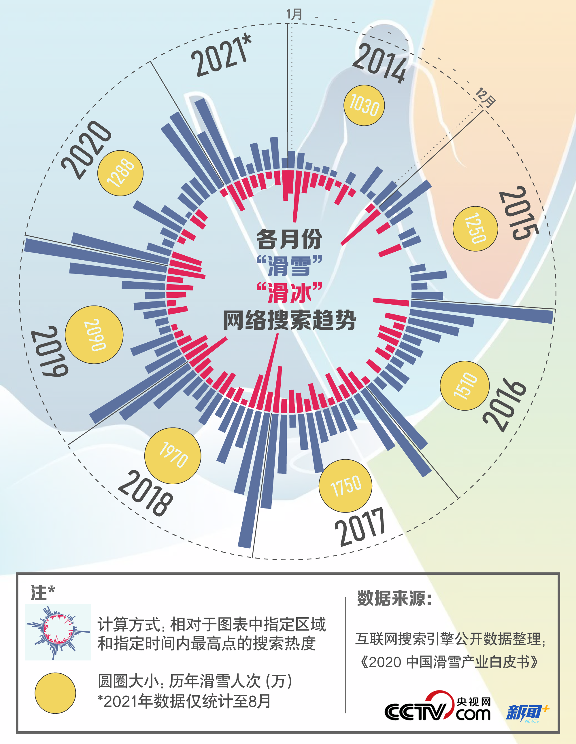 據(jù)央視網(wǎng)統(tǒng)計(jì),自2016年起,公眾在互聯(lián)網(wǎng)搜索“滑雪”“滑冰”等冰雪項(xiàng)目的頻次明顯上升,且多集中在11月、12月和次年1月。除2020年受疫情防控的影響外,實(shí)際參與滑雪項(xiàng)目的群眾也逐年增多,2019年參與滑雪運(yùn)動(dòng)的人次是2014年的二倍。rSy安康新聞網(wǎng)