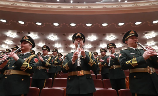 3月10日,中國人民政治協(xié)商會議第十三屆全國委員會第五次會議在北京人民大會堂舉行閉幕會。這是軍樂團(tuán)在演奏。新華社記者 盧燁 攝
