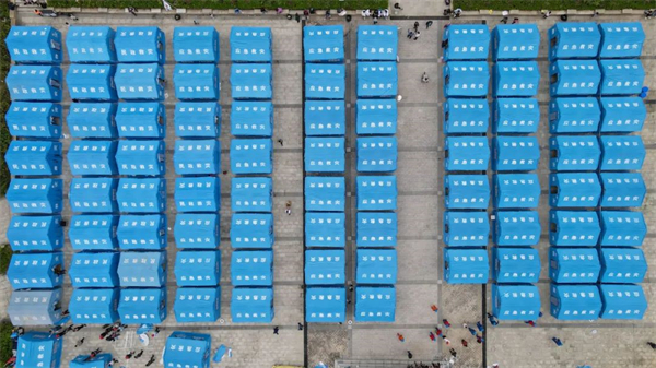 這是9月6日拍攝的位于石棉縣王崗坪鄉(xiāng)挖角村村委會(huì)的安置點(diǎn)(無(wú)人機(jī)照片)。新華社記者 胥冰潔 攝