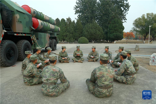 中共中央總書記、國家主席、中央軍委主席習近平24日下午出席軍隊領導干部會議時發(fā)表的重要講話,在解放軍和武警部隊引起強烈反響。這是中部戰(zhàn)區(qū)空軍“模范地空導彈營”開展“鳴鏑講堂”交流活動,積極組織官兵學習習主席重要講話(10月25日攝)。新華社發(fā)(趙勝之 攝)