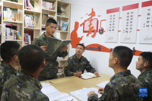 中共中央總書記、國家主席、中央軍委主席習近平24日下午出席軍隊領導干部會議時發(fā)表的重要講話,在解放軍和武警部隊引起強烈反響。這是南部戰(zhàn)區(qū)陸軍第74集團軍某合成旅“大渡河連”組織官兵認真學習習主席重要講話(10月25日攝)。新華社發(fā)(薛健 攝)