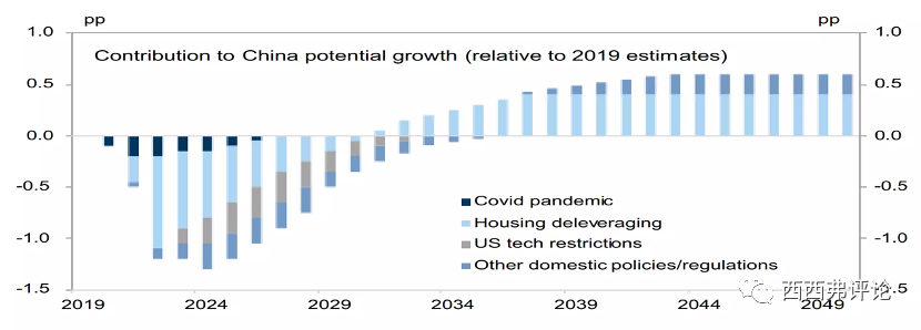 根據(jù)高盛的分析,在2022年,房地產(chǎn)業(yè)去杠桿對(duì)中國增長的負(fù)面影響,是疫情因素的數(shù)倍。