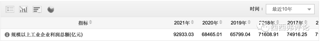 有不好的,也有好的。2021年,規(guī)模以上工業(yè)企業(yè)利潤總額,同比增長超過30%,從6.8萬億,增長到9.3萬億。2022年1-10月,雖然同比有所下降,但也遠(yuǎn)高于2019年1-10月水平。