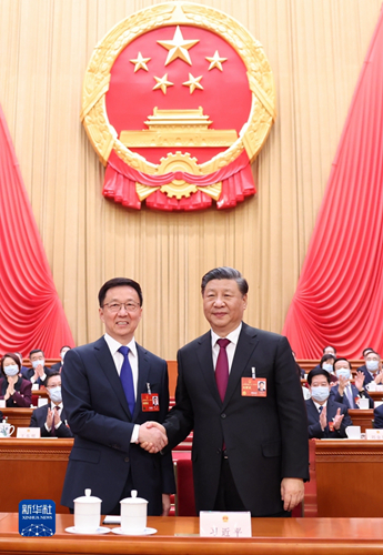 會(huì)議同時(shí)選舉趙樂際為第十四屆全國(guó)人民代表大會(huì)常務(wù)委員會(huì)委員長(zhǎng),選舉韓正為中華人民共和國(guó)副主席。
