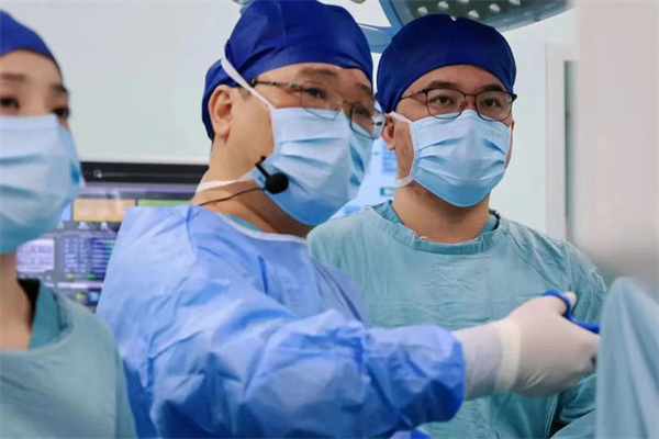 湖南省人民醫(yī)院肝膽胰微創(chuàng)外科主任尹新民(中)在工作中(資料照片)。新華社發(fā)
